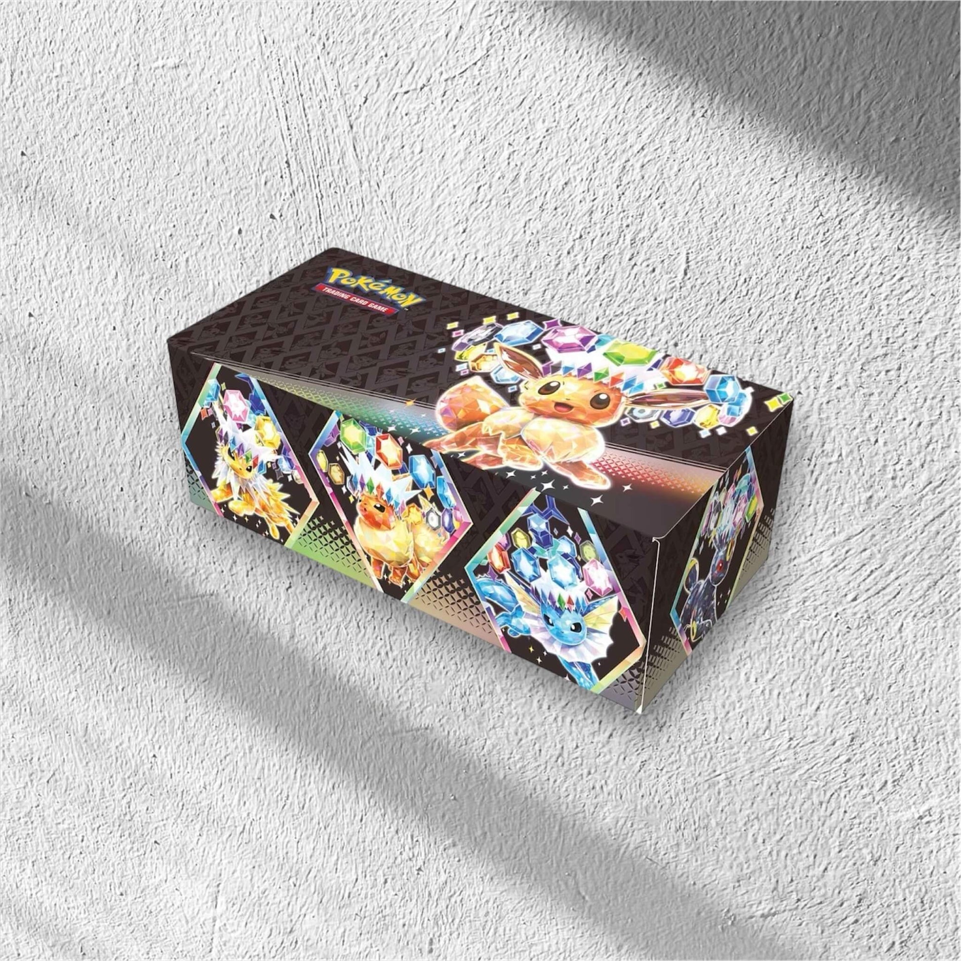 Eevee and its Evolutions all have unique strengths to discover—and they get even more powerful when they appear as Pokémon ex! In this collection, you get one randomly selected foil promo card featuring Eevee or one of its Evolutions as a Stellar Tera Pokémon ex, plus four booster packs from the special Scarlet & Violet—Prismatic Evolutions expansion. Then use the included dividers to organize and store your new cards inside this box!